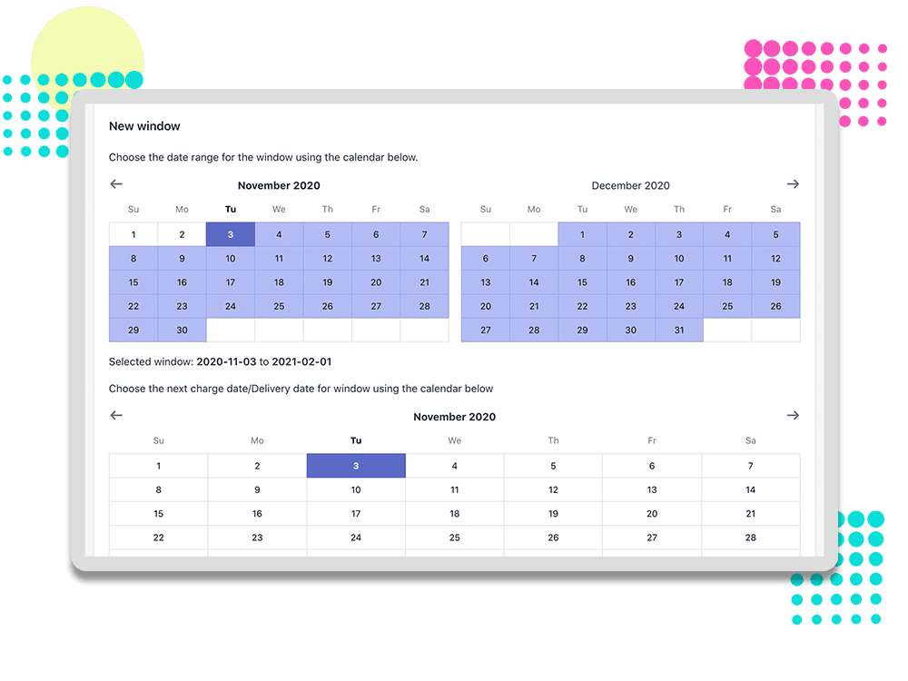 Create a shipping window to control the delivery and charge date of that customers next queued order based on which window their order falls within.